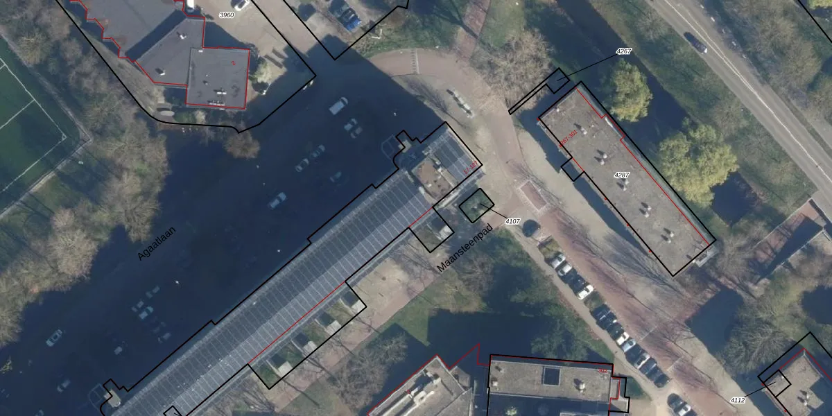 Het perceel waarop Agaatlaan 481 staat heeft een oppervlakte van 4615 m². Dit is een zeer groot perceel. De perceeloppervlakte wordt geregistreerd door het Kadaster. Gedetailleerde informatie over de maten van dit perceel kunt u vinden in het rapport Kadastrale kaart met maatvoering van Agaatlaan 481.