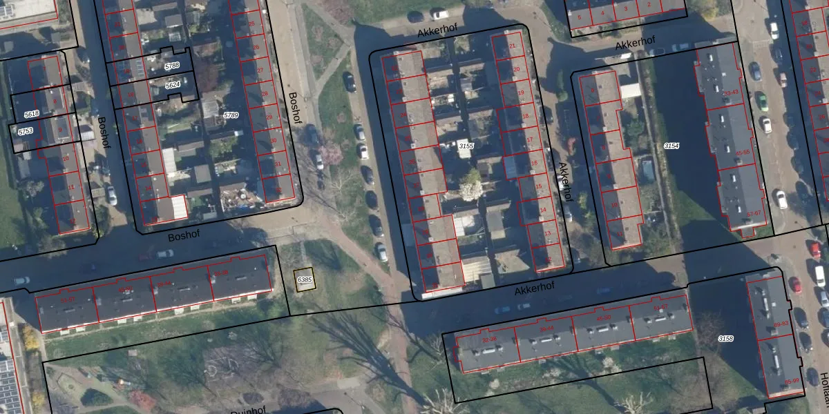 Het perceel waarop Akkerhof 28 staat heeft een oppervlakte van 2385 m². Dit is een zeer groot perceel. De perceeloppervlakte wordt geregistreerd door het Kadaster. Gedetailleerde informatie over de maten van dit perceel kunt u vinden in het rapport Kadastrale kaart met maatvoering van Akkerhof 28.