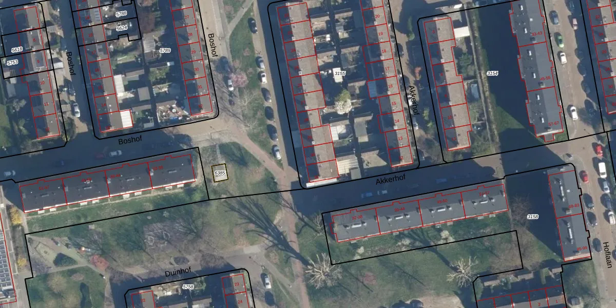 Het perceel waarop Akkerhof 30 staat heeft een oppervlakte van 2385 m². Dit is een zeer groot perceel. De perceeloppervlakte wordt geregistreerd door het Kadaster. Gedetailleerde informatie over de maten van dit perceel kunt u vinden in het rapport Kadastrale kaart met maatvoering van Akkerhof 30.
