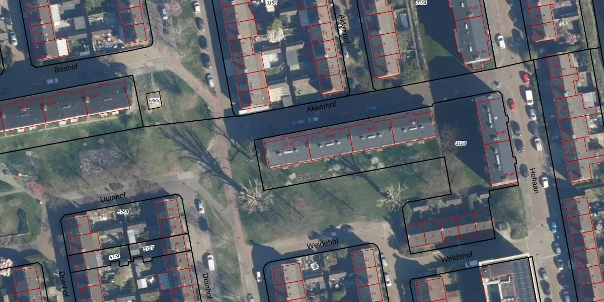Akkerhof 38 is gelegen op kadastraal perceel LDN01O3158. Deze kadastrale aanduiding is uniek en wordt gebruikt door het Kadaster om eigendomsrechten en andere zakelijke rechten vast te leggen. Het perceel maakt onderdeel uit van de kadastrale gemeente Leiden.