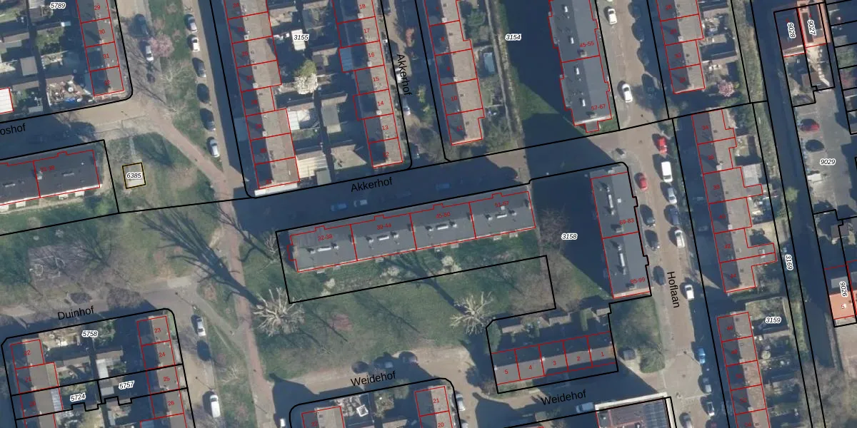 Akkerhof 45 is gelegen op kadastraal perceel LDN01O3158. Deze kadastrale aanduiding is uniek en wordt gebruikt door het Kadaster om eigendomsrechten en andere zakelijke rechten vast te leggen. Het perceel maakt onderdeel uit van de kadastrale gemeente Leiden.