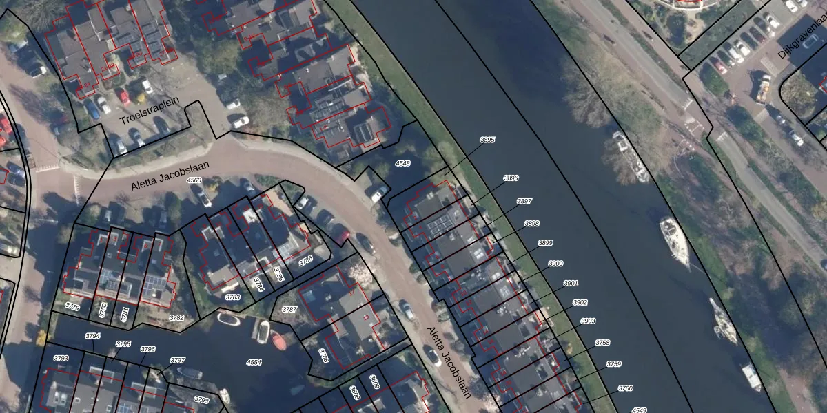 Aletta Jacobslaan 2 is gelegen op kadastraal perceel LDN01O3895. Deze kadastrale aanduiding is uniek en wordt gebruikt door het Kadaster om eigendomsrechten en andere zakelijke rechten vast te leggen. Het perceel maakt onderdeel uit van de kadastrale gemeente Leiden.