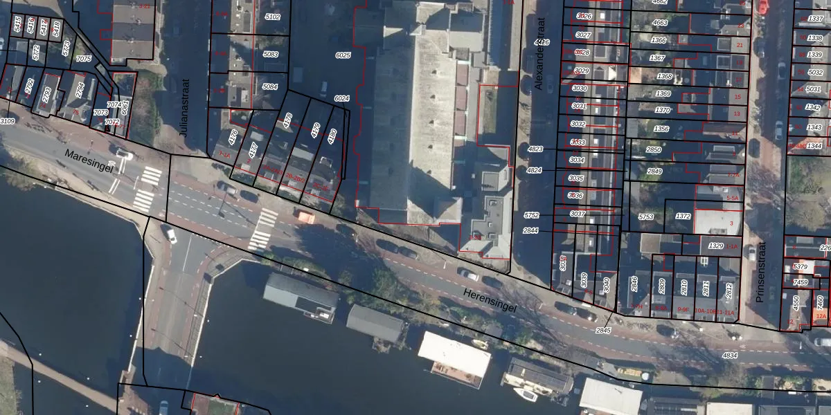 Het perceel waarop Alexanderstraat 1-A staat heeft een oppervlakte van 3316 m². Dit is een zeer groot perceel. De perceeloppervlakte wordt geregistreerd door het Kadaster. Gedetailleerde informatie over de maten van dit perceel kunt u vinden in het rapport Kadastrale kaart met maatvoering van Alexanderstraat 1-A.