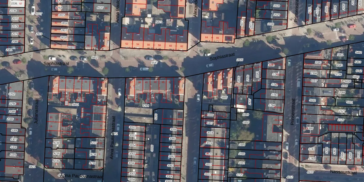 Het perceel waarop Alexanderstraat 21 staat heeft een oppervlakte van 693 m². Dit is een groot perceel. De perceeloppervlakte wordt geregistreerd door het Kadaster. Gedetailleerde informatie over de maten van dit perceel kunt u vinden in het rapport Kadastrale kaart met maatvoering van Alexanderstraat 21.