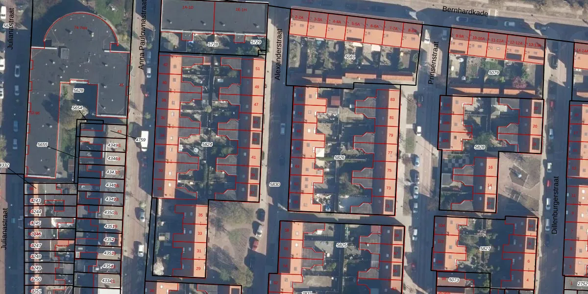 Het perceel waarop Alexanderstraat 66 staat heeft een oppervlakte van 1582 m². Dit is een zeer groot perceel. De perceeloppervlakte wordt geregistreerd door het Kadaster. Gedetailleerde informatie over de maten van dit perceel kunt u vinden in het rapport Kadastrale kaart met maatvoering van Alexanderstraat 66.