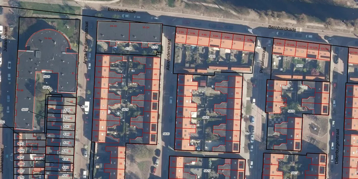 Het perceel waarop Alexanderstraat 70 staat heeft een oppervlakte van 1582 m². Dit is een zeer groot perceel. De perceeloppervlakte wordt geregistreerd door het Kadaster. Gedetailleerde informatie over de maten van dit perceel kunt u vinden in het rapport Kadastrale kaart met maatvoering van Alexanderstraat 70.