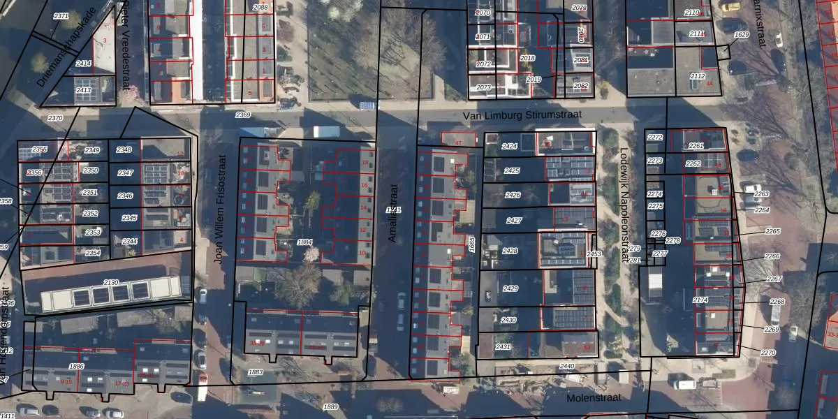 Het perceel waarop Amaliastraat 13 staat heeft een oppervlakte van 892 m². Dit is een groot perceel. De perceeloppervlakte wordt geregistreerd door het Kadaster. Gedetailleerde informatie over de maten van dit perceel kunt u vinden in het rapport Kadastrale kaart met maatvoering van Amaliastraat 13.