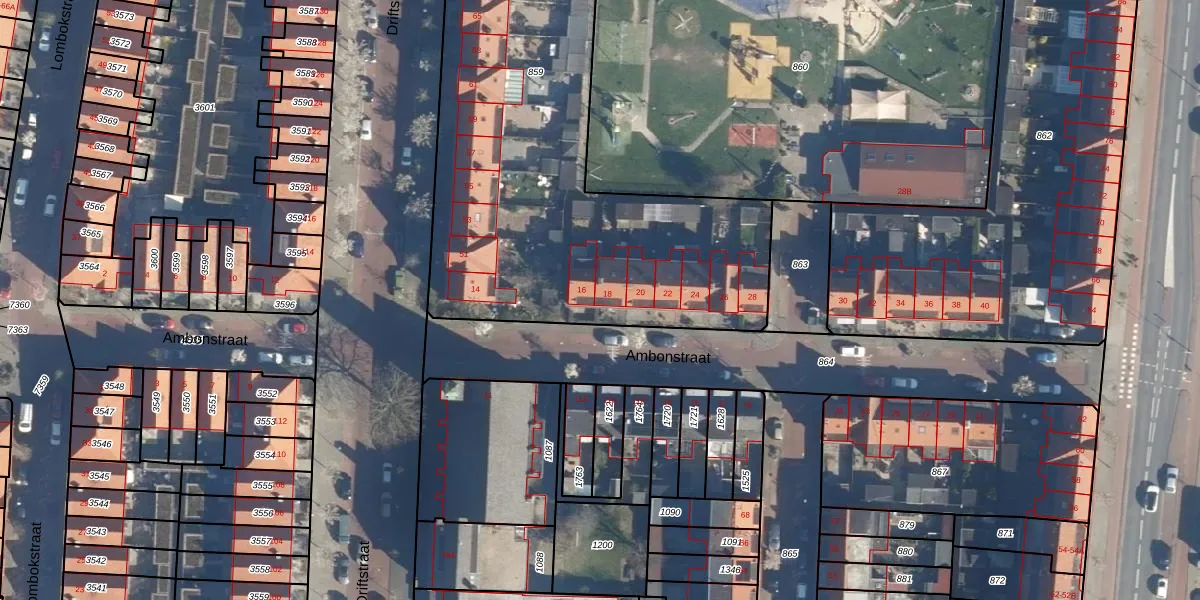 Het perceel waarop Ambonstraat 18 staat heeft een oppervlakte van 3668 m². Dit is een zeer groot perceel. De perceeloppervlakte wordt geregistreerd door het Kadaster. Gedetailleerde informatie over de maten van dit perceel kunt u vinden in het rapport Kadastrale kaart met maatvoering van Ambonstraat 18.