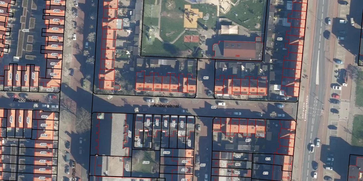 Het perceel waarop Ambonstraat 26 staat heeft een oppervlakte van 3668 m². Dit is een zeer groot perceel. De perceeloppervlakte wordt geregistreerd door het Kadaster. Gedetailleerde informatie over de maten van dit perceel kunt u vinden in het rapport Kadastrale kaart met maatvoering van Ambonstraat 26.