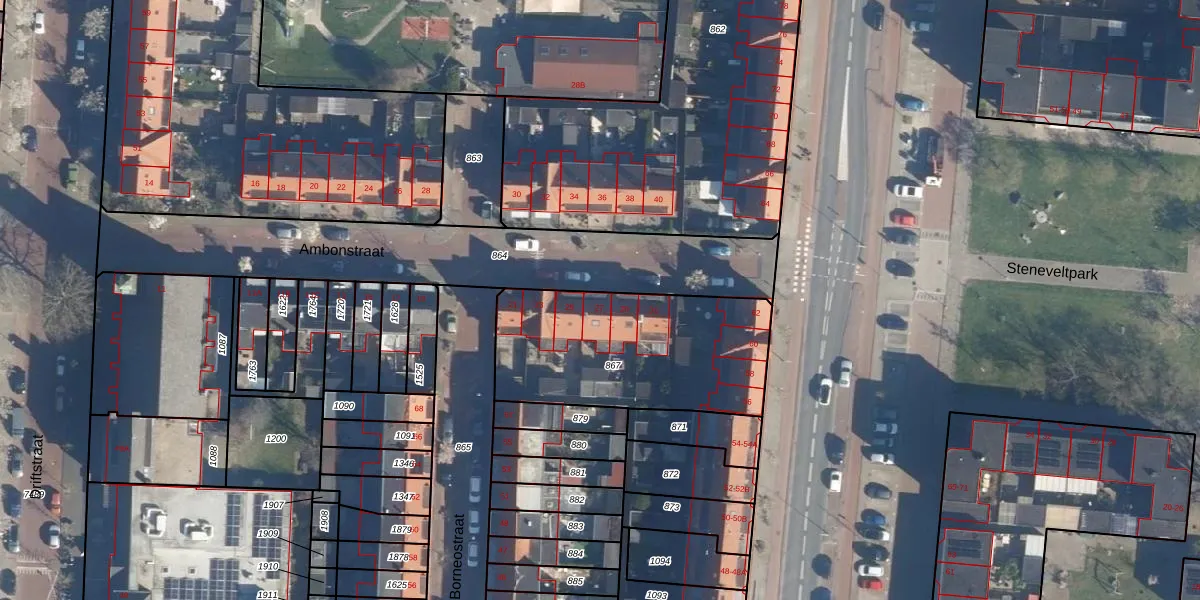 Het perceel waarop Ambonstraat 27 staat heeft een oppervlakte van 866 m². Dit is een groot perceel. De perceeloppervlakte wordt geregistreerd door het Kadaster. Gedetailleerde informatie over de maten van dit perceel kunt u vinden in het rapport Kadastrale kaart met maatvoering van Ambonstraat 27.
