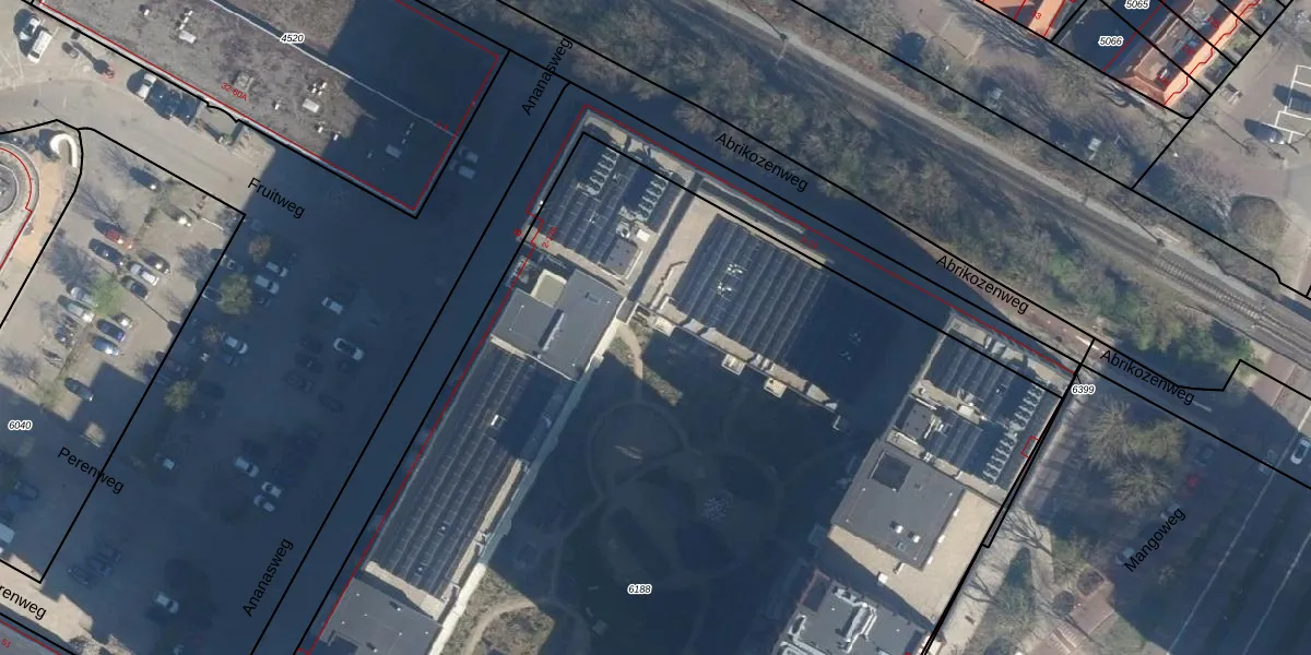 Het perceel waarop Ananasweg 124 staat heeft een oppervlakte van 9449 m². Dit is een zeer groot perceel. De perceeloppervlakte wordt geregistreerd door het Kadaster. Gedetailleerde informatie over de maten van dit perceel kunt u vinden in het rapport Kadastrale kaart met maatvoering van Ananasweg 124.