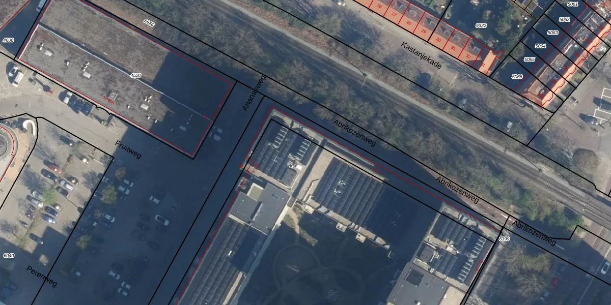 Het perceel waarop Ananasweg 60 staat heeft een oppervlakte van 9449 m². Dit is een zeer groot perceel. De perceeloppervlakte wordt geregistreerd door het Kadaster. Gedetailleerde informatie over de maten van dit perceel kunt u vinden in het rapport Kadastrale kaart met maatvoering van Ananasweg 60.