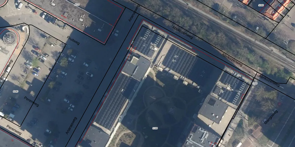 Het perceel waarop Ananasweg 96 staat heeft een oppervlakte van 9449 m². Dit is een zeer groot perceel. De perceeloppervlakte wordt geregistreerd door het Kadaster. Gedetailleerde informatie over de maten van dit perceel kunt u vinden in het rapport Kadastrale kaart met maatvoering van Ananasweg 96.