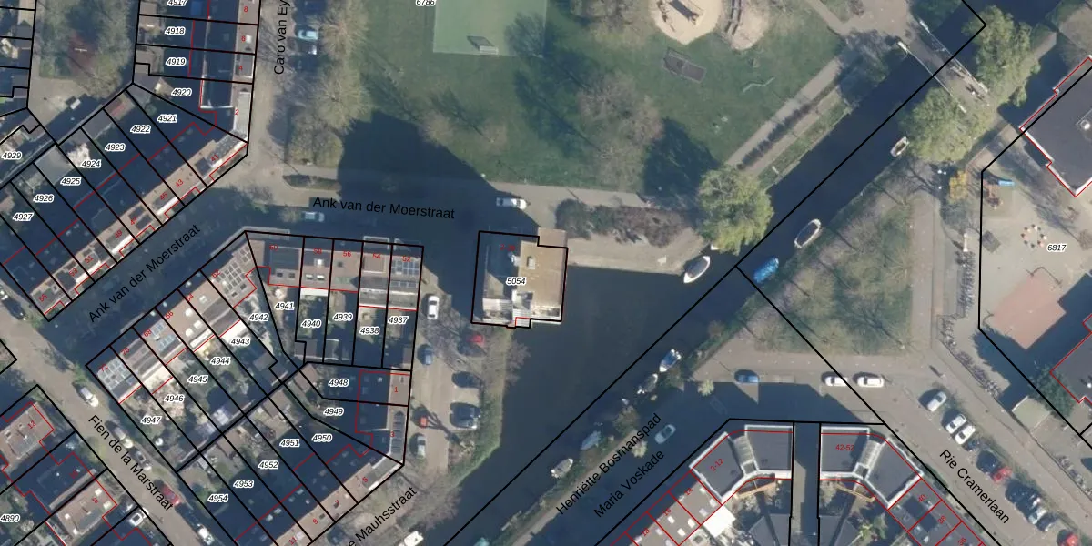 Ank van der Moerstraat 16 is gelegen op kadastraal perceel LDN01W5054. Deze kadastrale aanduiding is uniek en wordt gebruikt door het Kadaster om eigendomsrechten en andere zakelijke rechten vast te leggen. Het perceel maakt onderdeel uit van de kadastrale gemeente Leiden.