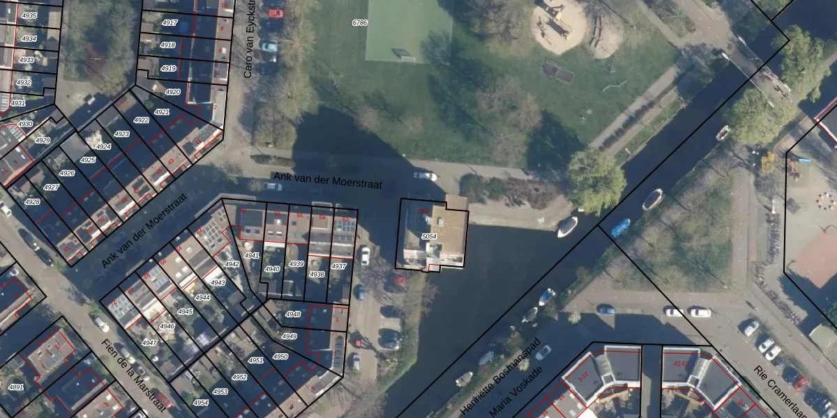 Ank van der Moerstraat 6 is gelegen op kadastraal perceel LDN01W5054. Deze kadastrale aanduiding is uniek en wordt gebruikt door het Kadaster om eigendomsrechten en andere zakelijke rechten vast te leggen. Het perceel maakt onderdeel uit van de kadastrale gemeente Leiden.