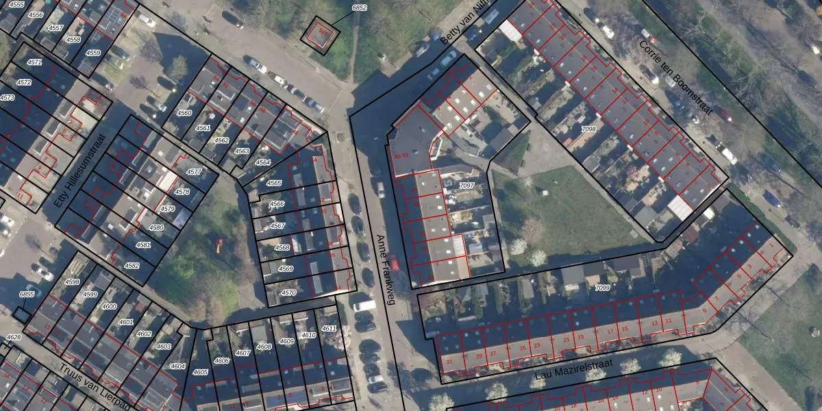Anne Frankweg 45 is gelegen op kadastraal perceel LDN01W7097. Deze kadastrale aanduiding is uniek en wordt gebruikt door het Kadaster om eigendomsrechten en andere zakelijke rechten vast te leggen. Het perceel maakt onderdeel uit van de kadastrale gemeente Leiden.