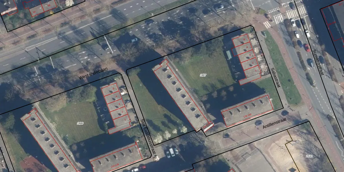 Het perceel waarop Antillenstraat 152 staat heeft een oppervlakte van 3910 m². Dit is een zeer groot perceel. De perceeloppervlakte wordt geregistreerd door het Kadaster. Gedetailleerde informatie over de maten van dit perceel kunt u vinden in het rapport Kadastrale kaart met maatvoering van Antillenstraat 152.