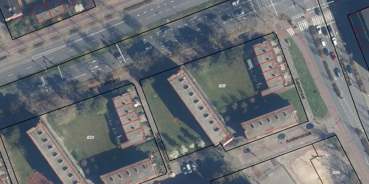 Antillenstraat 154 is gelegen op kadastraal perceel LDN01N1487. Deze kadastrale aanduiding is uniek en wordt gebruikt door het Kadaster om eigendomsrechten en andere zakelijke rechten vast te leggen. Het perceel maakt onderdeel uit van de kadastrale gemeente Leiden.