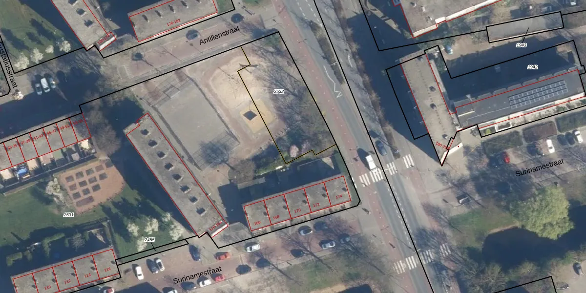 Antillenstraat 217 is gelegen op kadastraal perceel LDN01N2532. Deze kadastrale aanduiding is uniek en wordt gebruikt door het Kadaster om eigendomsrechten en andere zakelijke rechten vast te leggen. Het perceel maakt onderdeel uit van de kadastrale gemeente Leiden.