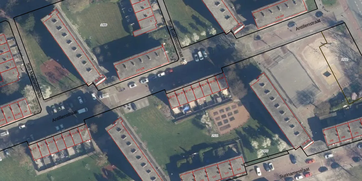 Antillenstraat 33 is gelegen op kadastraal perceel LDN01N2531. Deze kadastrale aanduiding is uniek en wordt gebruikt door het Kadaster om eigendomsrechten en andere zakelijke rechten vast te leggen. Het perceel maakt onderdeel uit van de kadastrale gemeente Leiden.