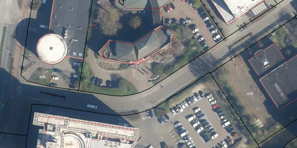 Het perceel waarop Archimedesweg 2-P staat heeft een oppervlakte van 1,3 ha. Dit is een zeer groot perceel. De perceeloppervlakte wordt geregistreerd door het Kadaster. Gedetailleerde informatie over de maten van dit perceel kunt u vinden in het rapport Kadastrale kaart met maatvoering van Archimedesweg 2-P.