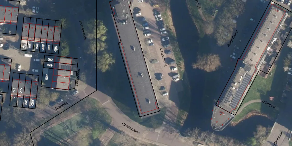 Het perceel waarop Arendshorst 33 staat heeft een oppervlakte van 2876 m². Dit is een zeer groot perceel. De perceeloppervlakte wordt geregistreerd door het Kadaster. Gedetailleerde informatie over de maten van dit perceel kunt u vinden in het rapport Kadastrale kaart met maatvoering van Arendshorst 33.