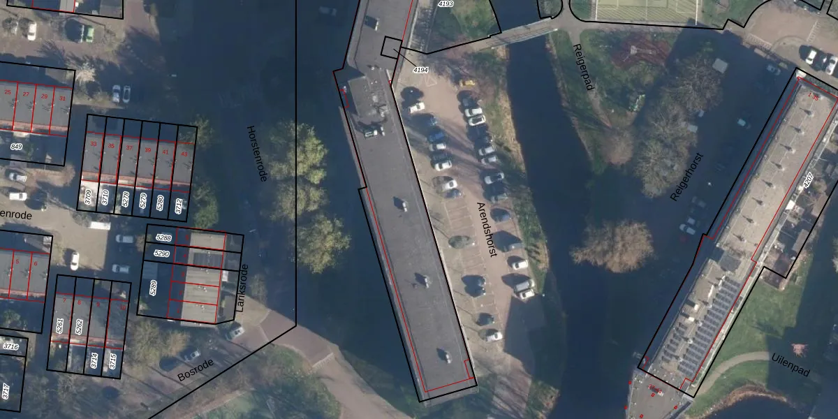 Het perceel waarop Arendshorst 35 staat heeft een oppervlakte van 2876 m². Dit is een zeer groot perceel. De perceeloppervlakte wordt geregistreerd door het Kadaster. Gedetailleerde informatie over de maten van dit perceel kunt u vinden in het rapport Kadastrale kaart met maatvoering van Arendshorst 35.
