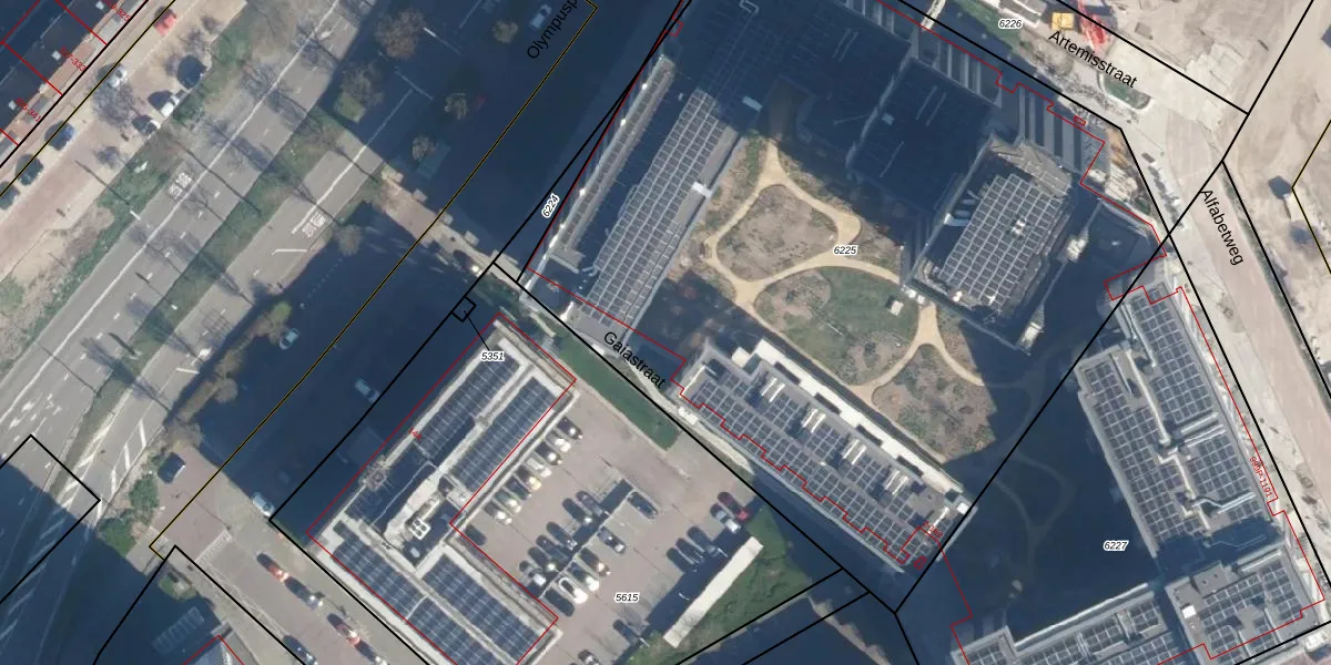 Het perceel waarop Artemisstraat 179 staat heeft een oppervlakte van 5615 m². Dit is een zeer groot perceel. De perceeloppervlakte wordt geregistreerd door het Kadaster. Gedetailleerde informatie over de maten van dit perceel kunt u vinden in het rapport Kadastrale kaart met maatvoering van Artemisstraat 179.