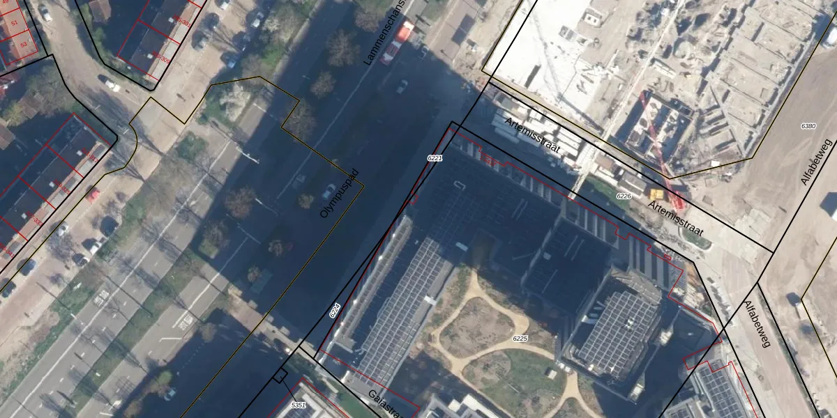 Het perceel waarop het adres ligt is LDN01-O-6225. De afkorting 'LDN01' staat voor kadastrale gemeente Leiden. De gemiddelde perceeloppervlakte in de kadastrale gemeente Leiden is 703,99 m². Dit perceel is met zijn 5615 m² dus groter dan gemiddeld. De grootste perceeloppervlakte in de kadastrale gemeente is 51,8 ha. De kleinste oppervlakte bedraagt 0 m². Op het perceel zijn 336 adressen aanwezig. De huidige grenzen van het perceel zijn digitaal in de Basisregistratie Kadaster (BRK) geregistreerd op 10-02-2025.