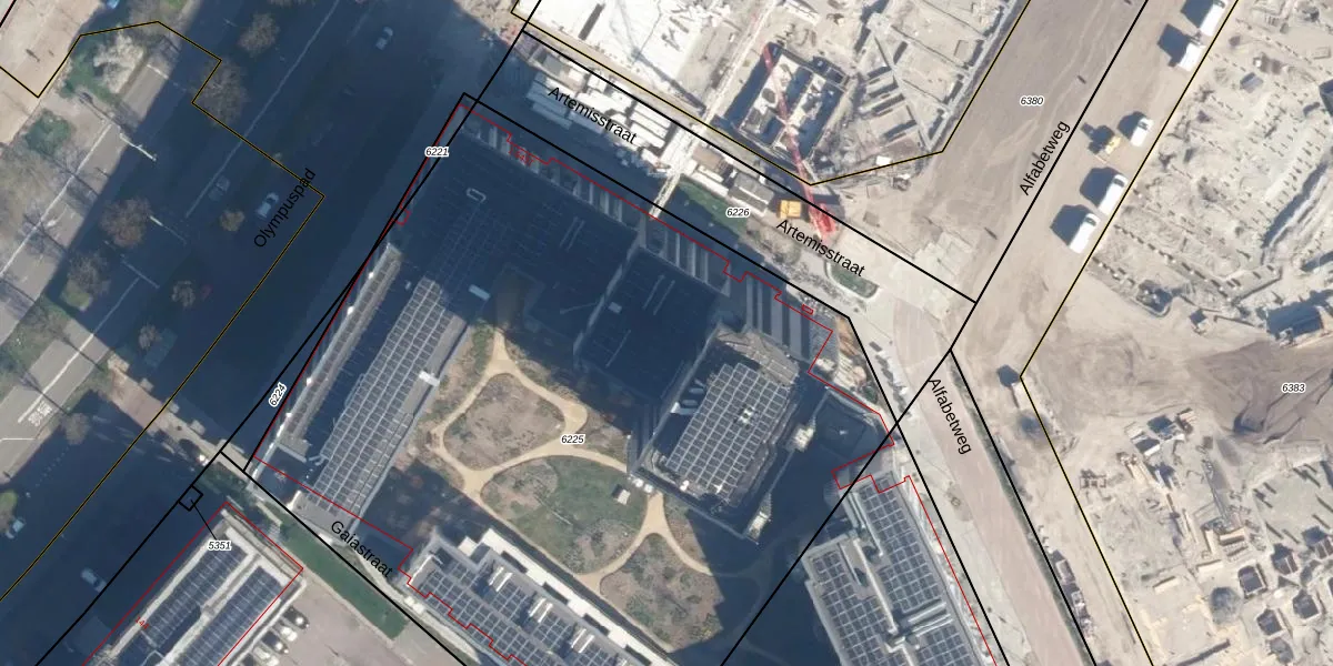 Het perceel waarop Artemisstraat 381 staat heeft een oppervlakte van 5615 m². Dit is een zeer groot perceel. De perceeloppervlakte wordt geregistreerd door het Kadaster. Gedetailleerde informatie over de maten van dit perceel kunt u vinden in het rapport Kadastrale kaart met maatvoering van Artemisstraat 381.