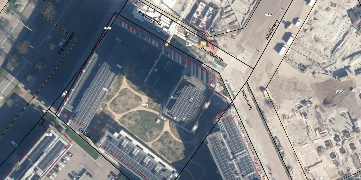 Het perceel waarop Artemisstraat 413 staat heeft een oppervlakte van 5615 m². Dit is een zeer groot perceel. De perceeloppervlakte wordt geregistreerd door het Kadaster. Gedetailleerde informatie over de maten van dit perceel kunt u vinden in het rapport Kadastrale kaart met maatvoering van Artemisstraat 413.