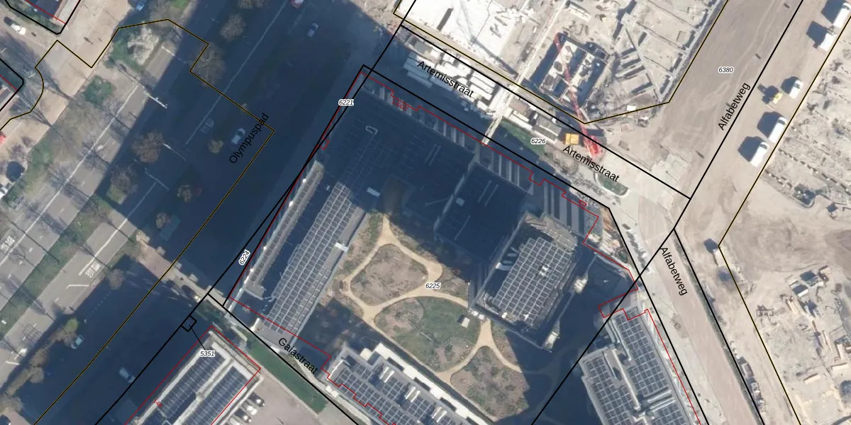 Het perceel waarop Artemisstraat 439 staat heeft een oppervlakte van 5615 m². Dit is een zeer groot perceel. De perceeloppervlakte wordt geregistreerd door het Kadaster. Gedetailleerde informatie over de maten van dit perceel kunt u vinden in het rapport Kadastrale kaart met maatvoering van Artemisstraat 439.