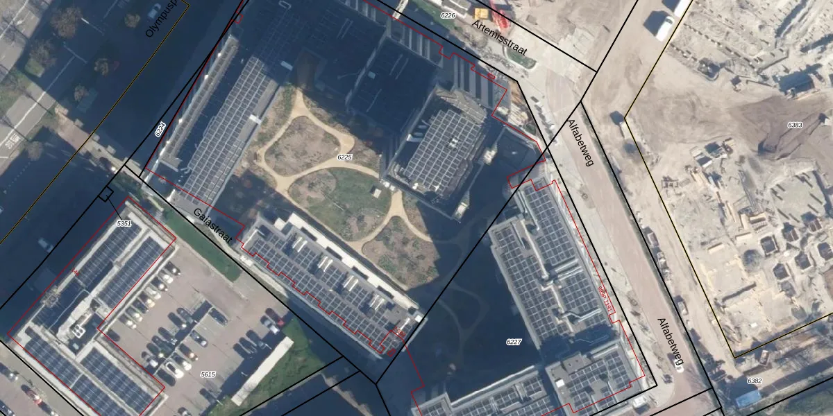 Het perceel waarop Artemisstraat 541 staat heeft een oppervlakte van 5615 m². Dit is een zeer groot perceel. De perceeloppervlakte wordt geregistreerd door het Kadaster. Gedetailleerde informatie over de maten van dit perceel kunt u vinden in het rapport Kadastrale kaart met maatvoering van Artemisstraat 541.