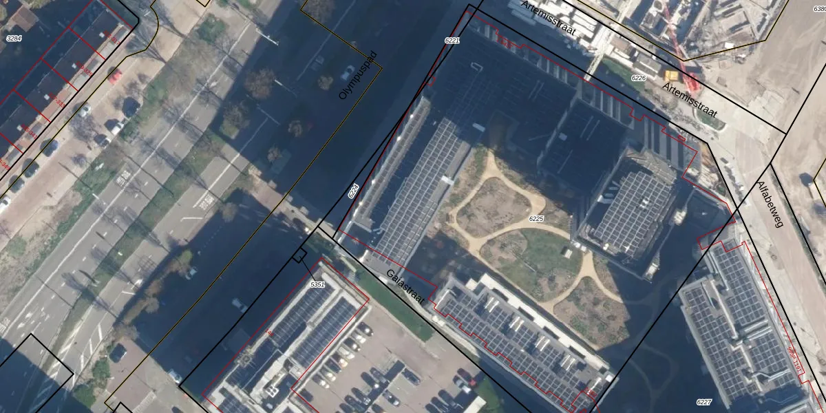 Het perceel waarop het adres ligt is LDN01-O-6225. De afkorting 'LDN01' staat voor kadastrale gemeente Leiden. De gemiddelde perceeloppervlakte in de kadastrale gemeente Leiden is 703,94 m². Dit perceel is met zijn 5615 m² dus groter dan gemiddeld. De grootste perceeloppervlakte in de kadastrale gemeente is 51,8 ha. De kleinste oppervlakte bedraagt 0 m². Op het perceel zijn 336 adressen aanwezig. In de Basisregistratie Kadaster (BRK) werden de grenzen van het perceel geregistreerd op 10-02-2025.