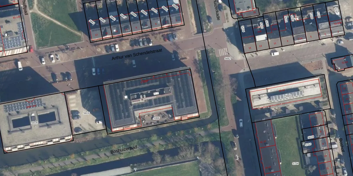 Het perceel waarop het adres ligt is LDN01-O-5966. De afkorting 'LDN01' staat voor kadastrale gemeente Leiden. Het perceel is met 1485 m² relatief groot. Het gemiddelde ligt in de kadastrale gemeente Leiden op 703,94 m². De grootste perceeloppervlakte in de kadastrale gemeente is 51,8 ha. De kleinste oppervlakte bedraagt 0 m². Op het perceel liggen in totaal 75 adressen. In de Basisregistratie Kadaster (BRK) werden de grenzen van het perceel geregistreerd op 25-06-2019.