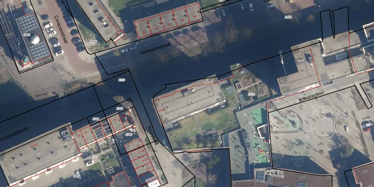 Het perceel waarop Arubapad 42 staat heeft een oppervlakte van 6365 m². Dit is een zeer groot perceel. De perceeloppervlakte wordt geregistreerd door het Kadaster. Gedetailleerde informatie over de maten van dit perceel kunt u vinden in het rapport Kadastrale kaart met maatvoering van Arubapad 42.