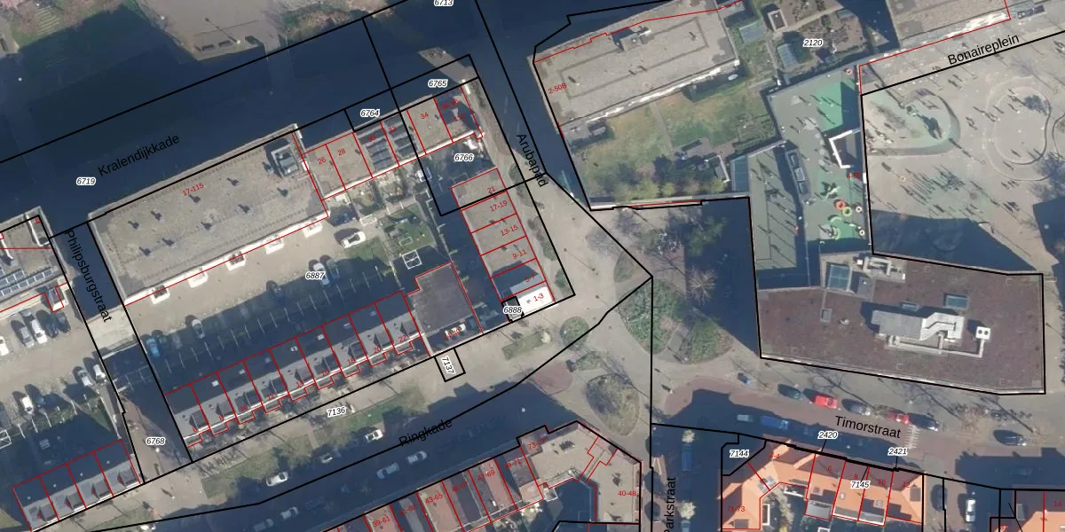Arubapad 7 is gelegen op kadastraal perceel LDN01K6887. Deze kadastrale aanduiding is uniek en wordt gebruikt door het Kadaster om eigendomsrechten en andere zakelijke rechten vast te leggen. Het perceel maakt onderdeel uit van de kadastrale gemeente Leiden.