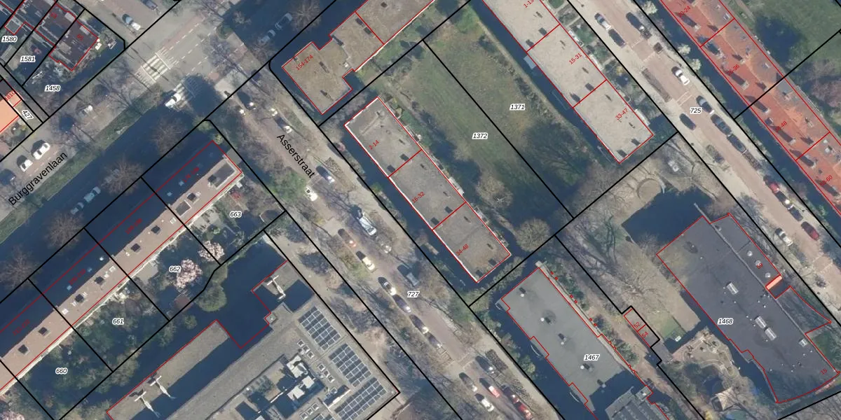 Het perceel waarop Asserstraat 26 staat heeft een oppervlakte van 1802 m². Dit is een zeer groot perceel. De perceeloppervlakte wordt geregistreerd door het Kadaster. Gedetailleerde informatie over de maten van dit perceel kunt u vinden in het rapport Kadastrale kaart met maatvoering van Asserstraat 26.