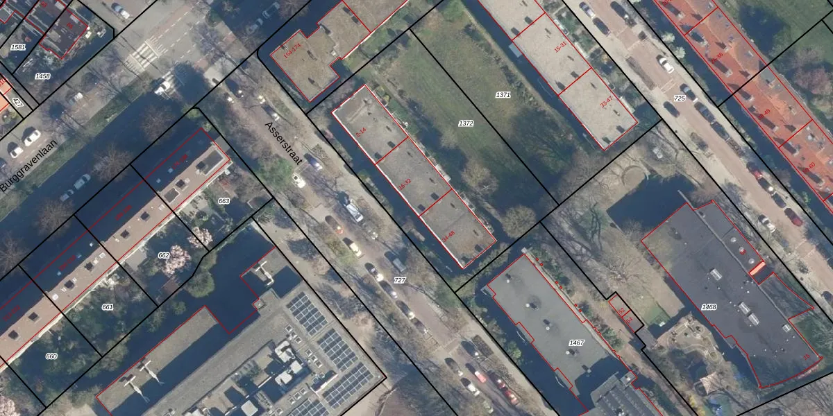 Het perceel waarop Asserstraat 32 staat heeft een oppervlakte van 1802 m². Dit is een zeer groot perceel. De perceeloppervlakte wordt geregistreerd door het Kadaster. Gedetailleerde informatie over de maten van dit perceel kunt u vinden in het rapport Kadastrale kaart met maatvoering van Asserstraat 32.