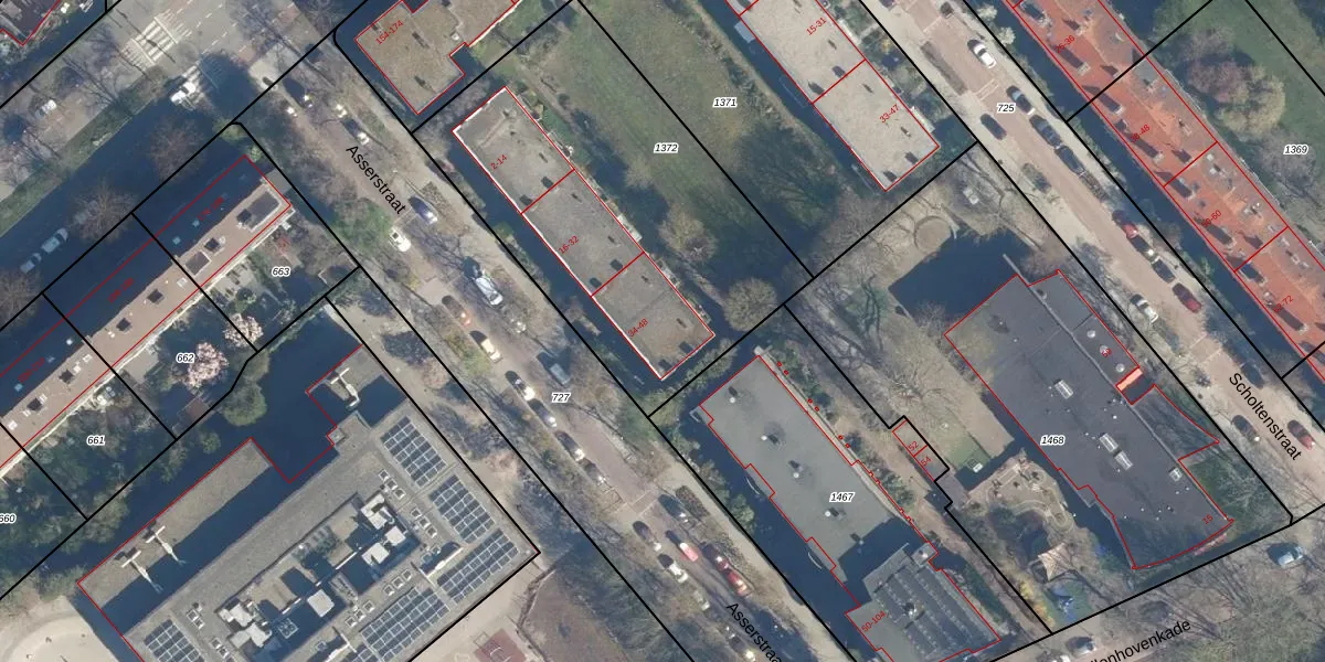 Asserstraat 46 is gelegen op kadastraal perceel LDN01Q1372. Deze kadastrale aanduiding is uniek en wordt gebruikt door het Kadaster om eigendomsrechten en andere zakelijke rechten vast te leggen. Het perceel maakt onderdeel uit van de kadastrale gemeente Leiden.