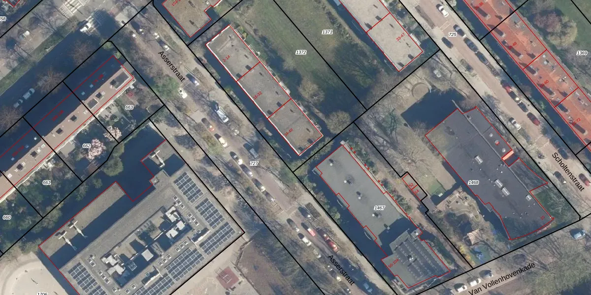 Asserstraat 48 is gelegen op kadastraal perceel LDN01Q1372. Deze kadastrale aanduiding is uniek en wordt gebruikt door het Kadaster om eigendomsrechten en andere zakelijke rechten vast te leggen. Het perceel maakt onderdeel uit van de kadastrale gemeente Leiden.