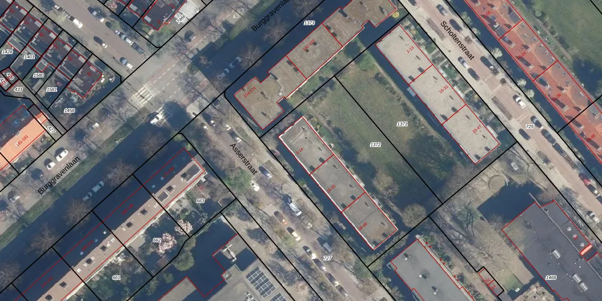 Asserstraat 6 is gelegen op kadastraal perceel LDN01Q1372. Deze kadastrale aanduiding is uniek en wordt gebruikt door het Kadaster om eigendomsrechten en andere zakelijke rechten vast te leggen. Het perceel maakt onderdeel uit van de kadastrale gemeente Leiden.