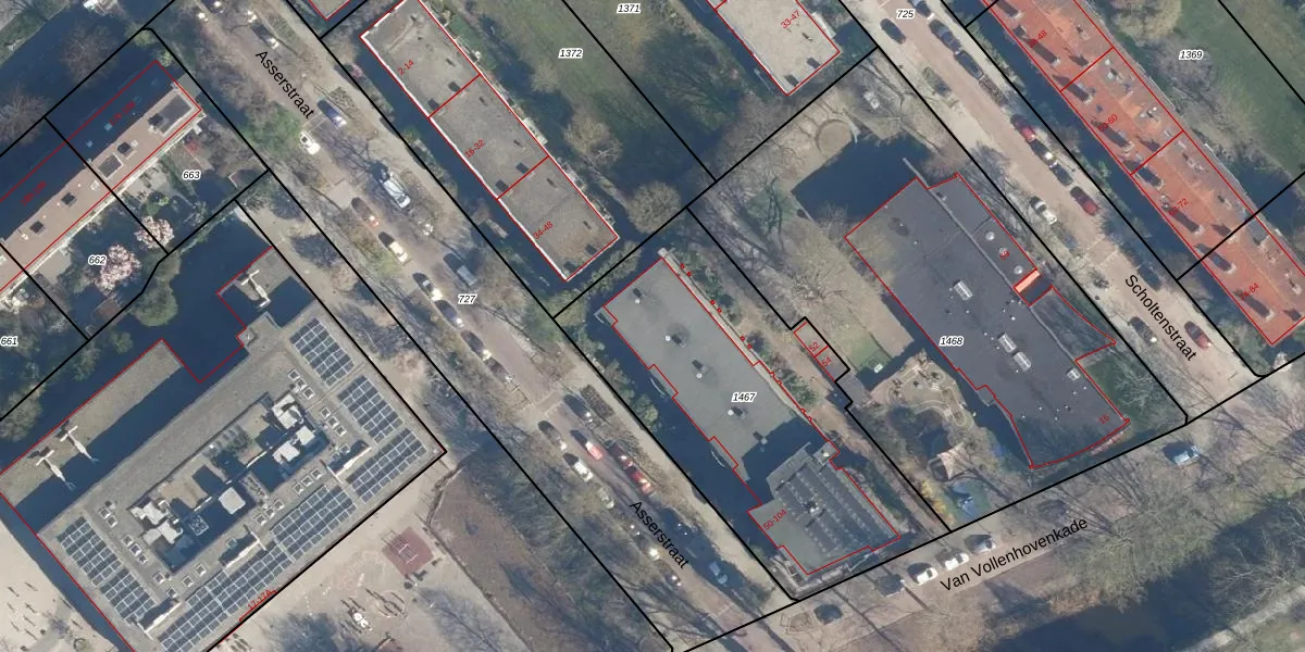 Asserstraat 72 is gelegen op kadastraal perceel LDN01Q1467. Deze kadastrale aanduiding is uniek en wordt gebruikt door het Kadaster om eigendomsrechten en andere zakelijke rechten vast te leggen. Het perceel maakt onderdeel uit van de kadastrale gemeente Leiden.