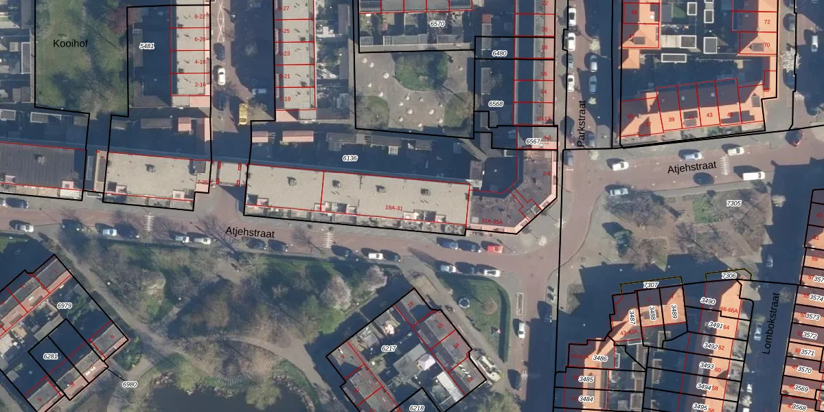 Atjehstraat 21 is gelegen op kadastraal perceel LDN01K6136. Deze kadastrale aanduiding is uniek en wordt gebruikt door het Kadaster om eigendomsrechten en andere zakelijke rechten vast te leggen. Het perceel maakt onderdeel uit van de kadastrale gemeente Leiden.