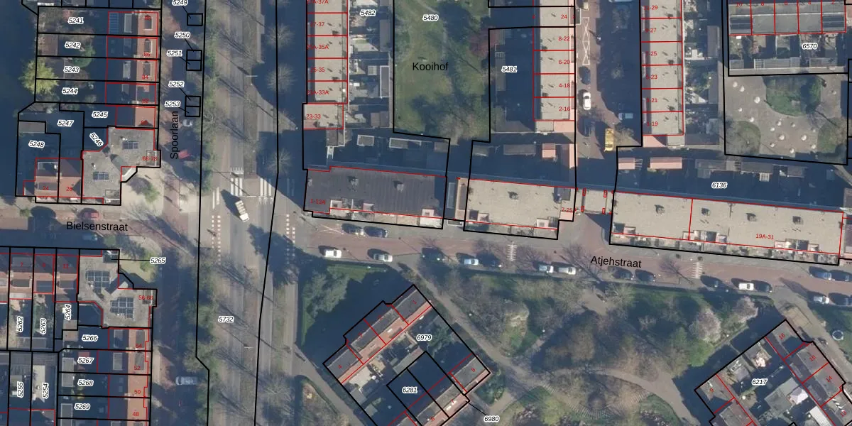 Het perceel waarop Atjehstraat 5-A staat heeft een oppervlakte van 2985 m². Dit is een zeer groot perceel. De perceeloppervlakte wordt geregistreerd door het Kadaster. Gedetailleerde informatie over de maten van dit perceel kunt u vinden in het rapport Kadastrale kaart met maatvoering van Atjehstraat 5-A.