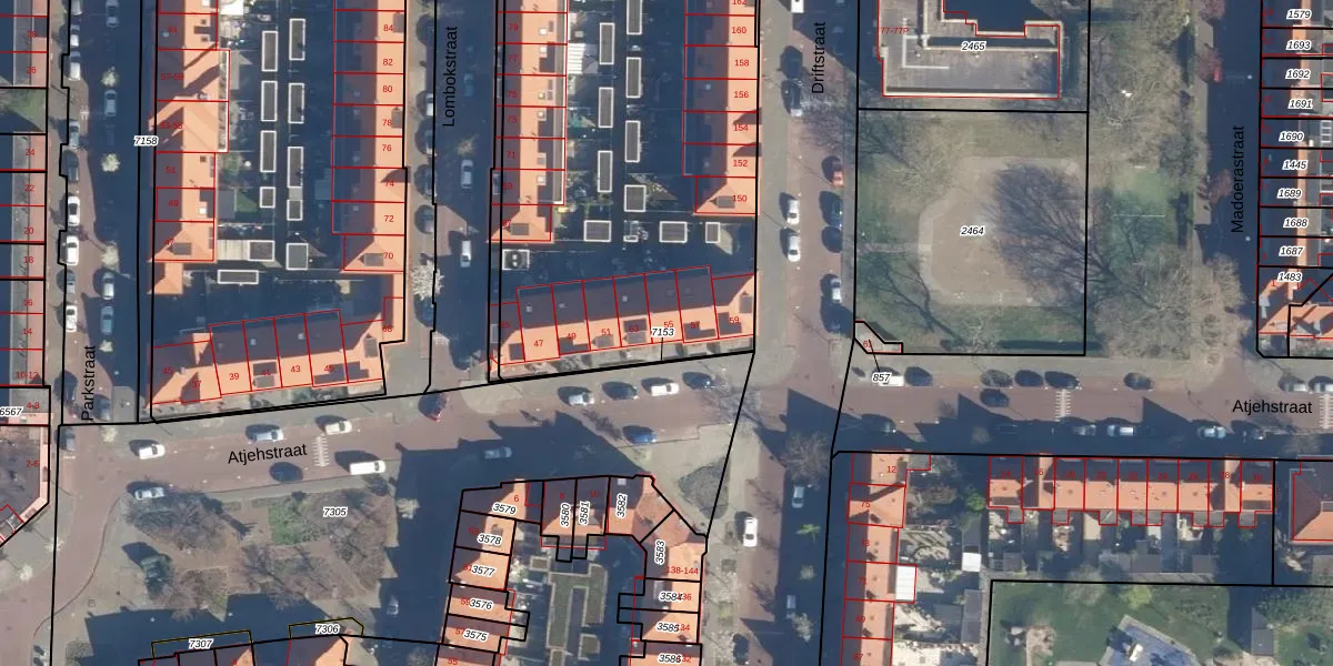 Het perceel waarop Atjehstraat 55 staat heeft een oppervlakte van 3224 m². Dit is een zeer groot perceel. De perceeloppervlakte wordt geregistreerd door het Kadaster. Gedetailleerde informatie over de maten van dit perceel kunt u vinden in het rapport Kadastrale kaart met maatvoering van Atjehstraat 55.