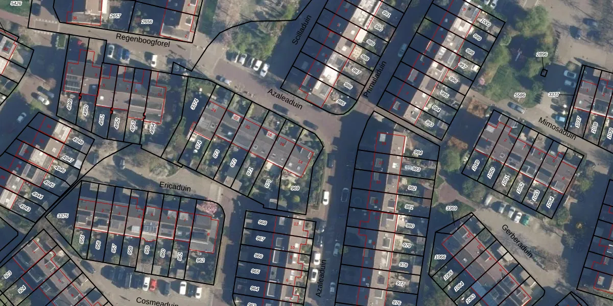 Gebruik de zoekbalk of klik op een perceel voor informatie over de adressen binnen dit perceel.