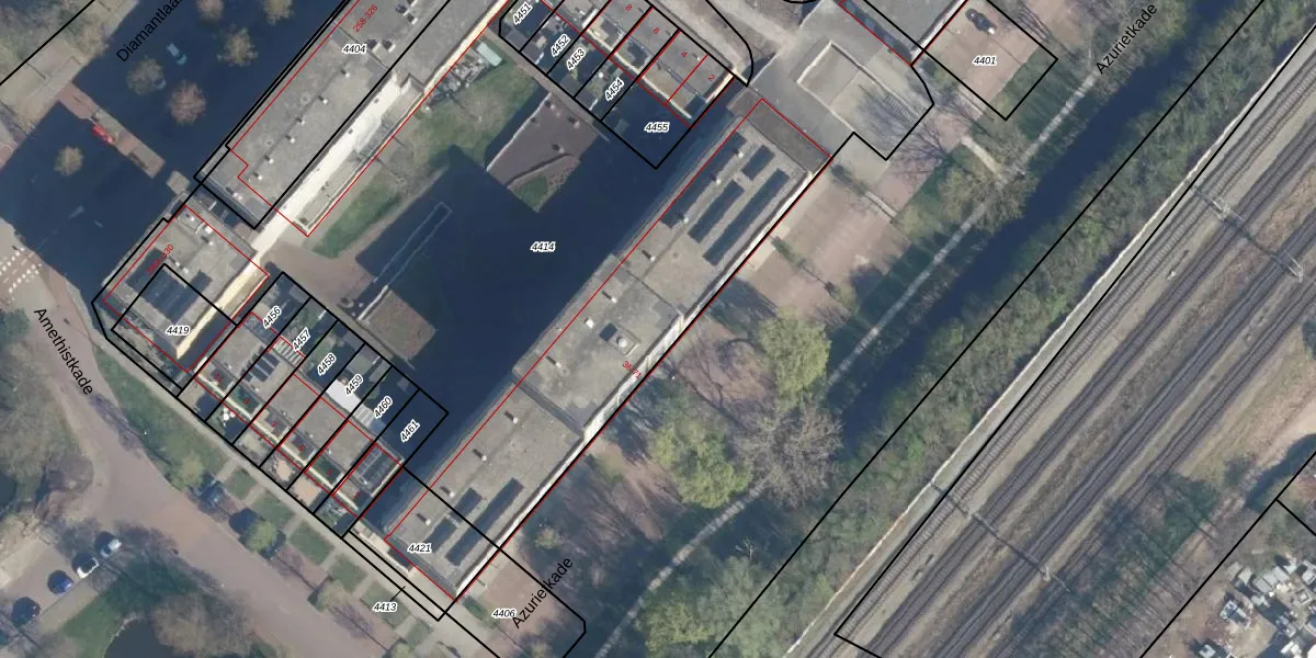 Azurietkade 40 is gelegen op kadastraal perceel LDN01X4414. Deze kadastrale aanduiding is uniek en wordt gebruikt door het Kadaster om eigendomsrechten en andere zakelijke rechten vast te leggen. Het perceel maakt onderdeel uit van de kadastrale gemeente Leiden.