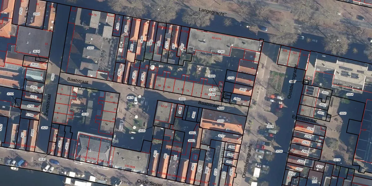 Baatstraat 7-A is gelegen op kadastraal perceel LDN01B3760. Deze kadastrale aanduiding is uniek en wordt gebruikt door het Kadaster om eigendomsrechten en andere zakelijke rechten vast te leggen. Het perceel maakt onderdeel uit van de kadastrale gemeente Leiden.