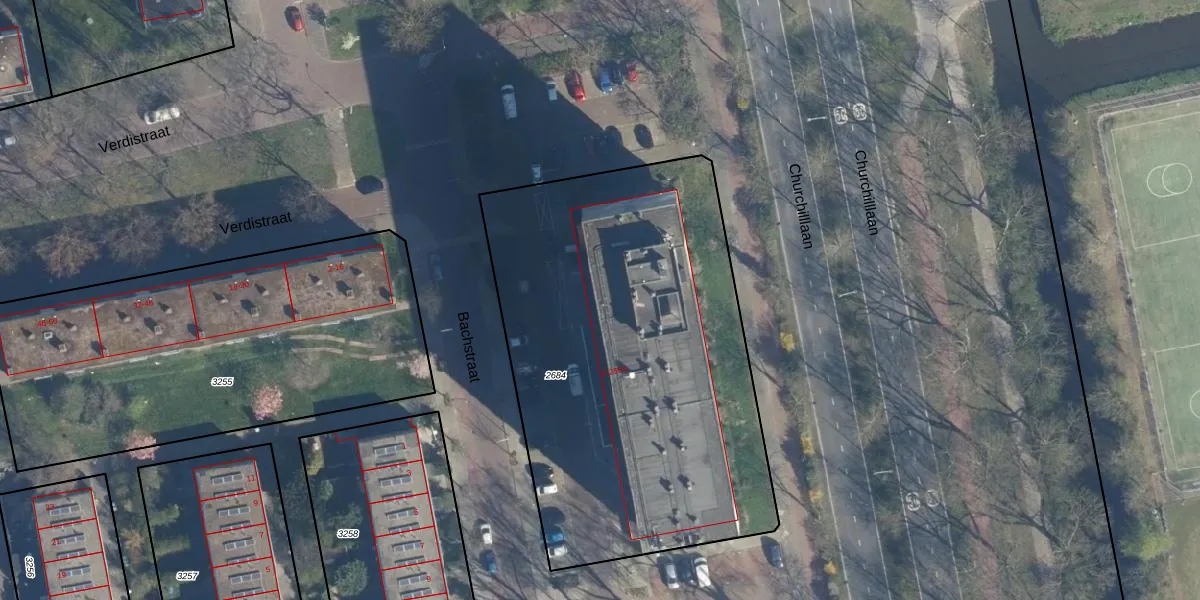 Het perceel waarop Bachstraat 10 staat heeft een oppervlakte van 2486 m². Dit is een zeer groot perceel. De perceeloppervlakte wordt geregistreerd door het Kadaster. Gedetailleerde informatie over de maten van dit perceel kunt u vinden in het rapport Kadastrale kaart met maatvoering van Bachstraat 10.